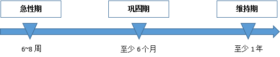 鞏固期需維持急性期所用的有效藥物治療至少6個(gè)月,以防止已緩解的癥狀復(fù)發(fā)。同時(shí),還需進(jìn)一步緩解癥狀,促進(jìn)恢復(fù)。