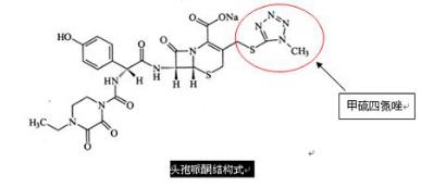 只有含有甲硫四氮唑基團(tuán)或甲硫三嗪側(cè)鏈的頭孢才有雙硫侖反應(yīng)。這些頭孢類藥物有:頭孢哌酮、頭孢曲松、頭孢美唑、頭孢甲肟、頭孢匹胺、頭孢孟多等。